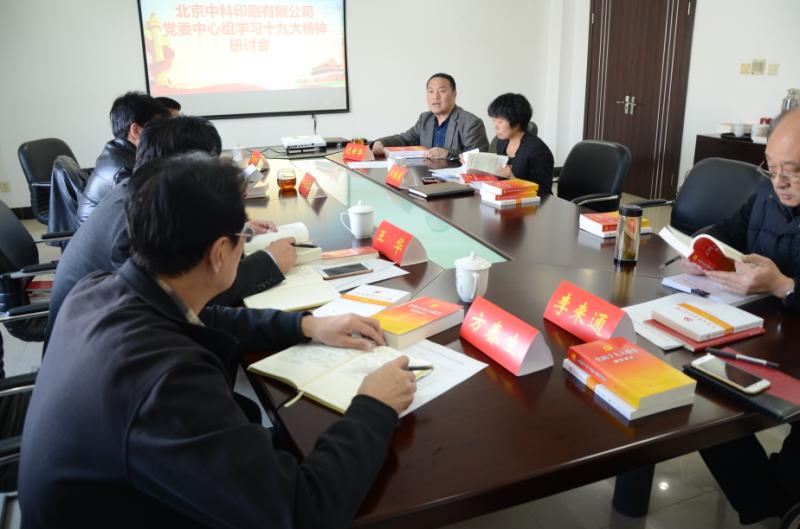 11月22日,北京中科印刷有限公司召开党委中心组学习研讨会,学习研讨十九大报告和党章,学习习近平总书记在党的十九届一中全会上的重要讲话精神,研究部署贯彻落实工作。党委书记、董事长沈幸华主持会议,公司党委委员、纪委委员参加会议。