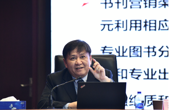 李锋总编辑作了题为“坚持正确导向,加强精品建设,实现高质量发展”的编辑工作报告,围绕内容质量、编校质量、设计及印制质量三个方面,全面回顾了2021年全社图书质量工作情况,分析了质量工作存在的问题,并从内容质量、编校质量、设计及印制质量及专业数字出版四个方面部署了2022年的重点工作。