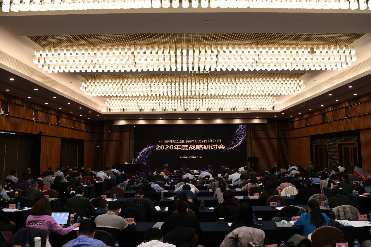 2020年12月13日-14日,中国科技出版传媒股份有限公司2020年度战略研讨会召开。本次会议的主题是“深入研判新形势,科学编制十四五,守正创新谋新篇”。股份公司领导,各部门及分社主要负责人,分(子)公司主要高管,部分业务骨干参加了本次会议。